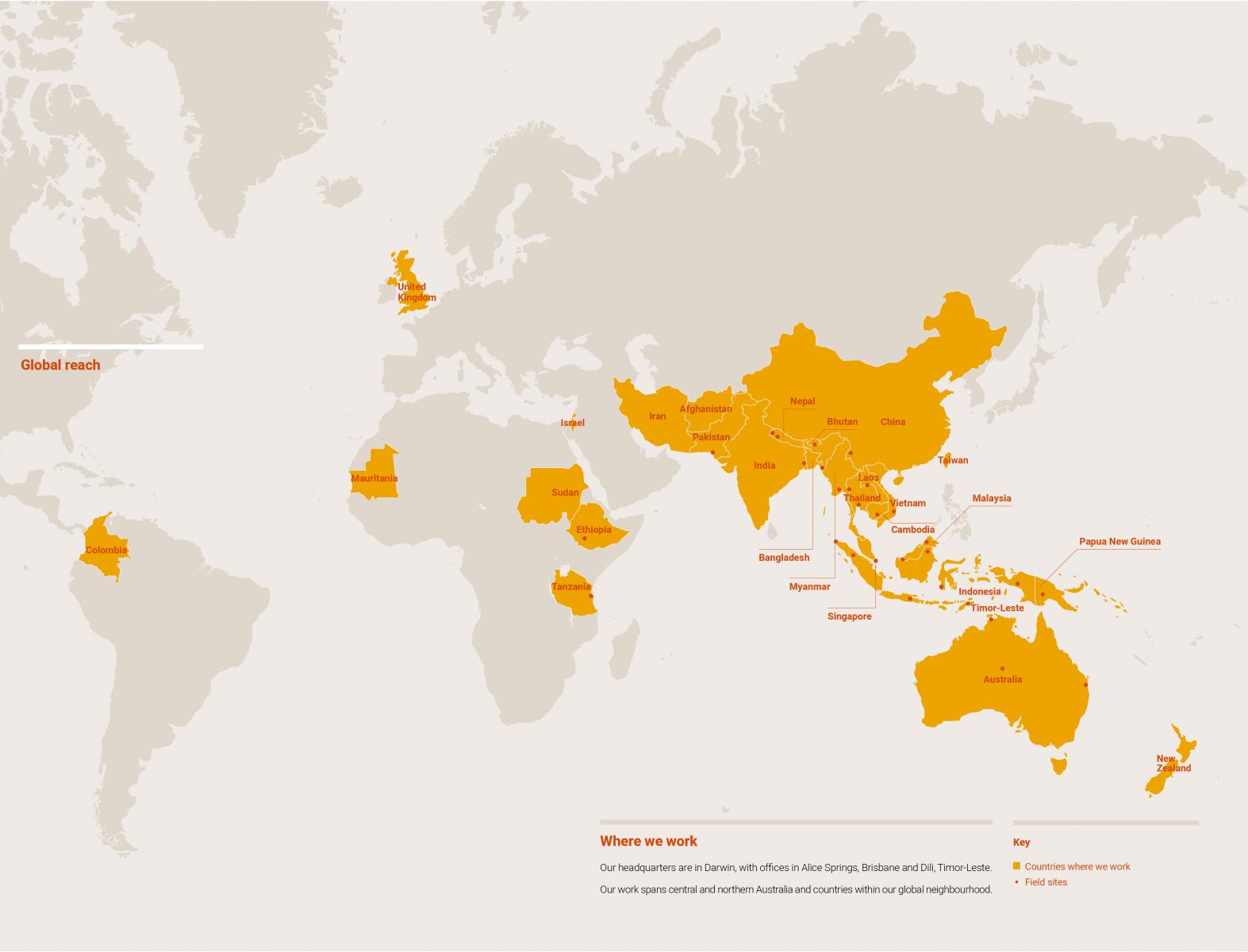 Our work spans central and northern Australia, and developing countries within our global neighbourhood.