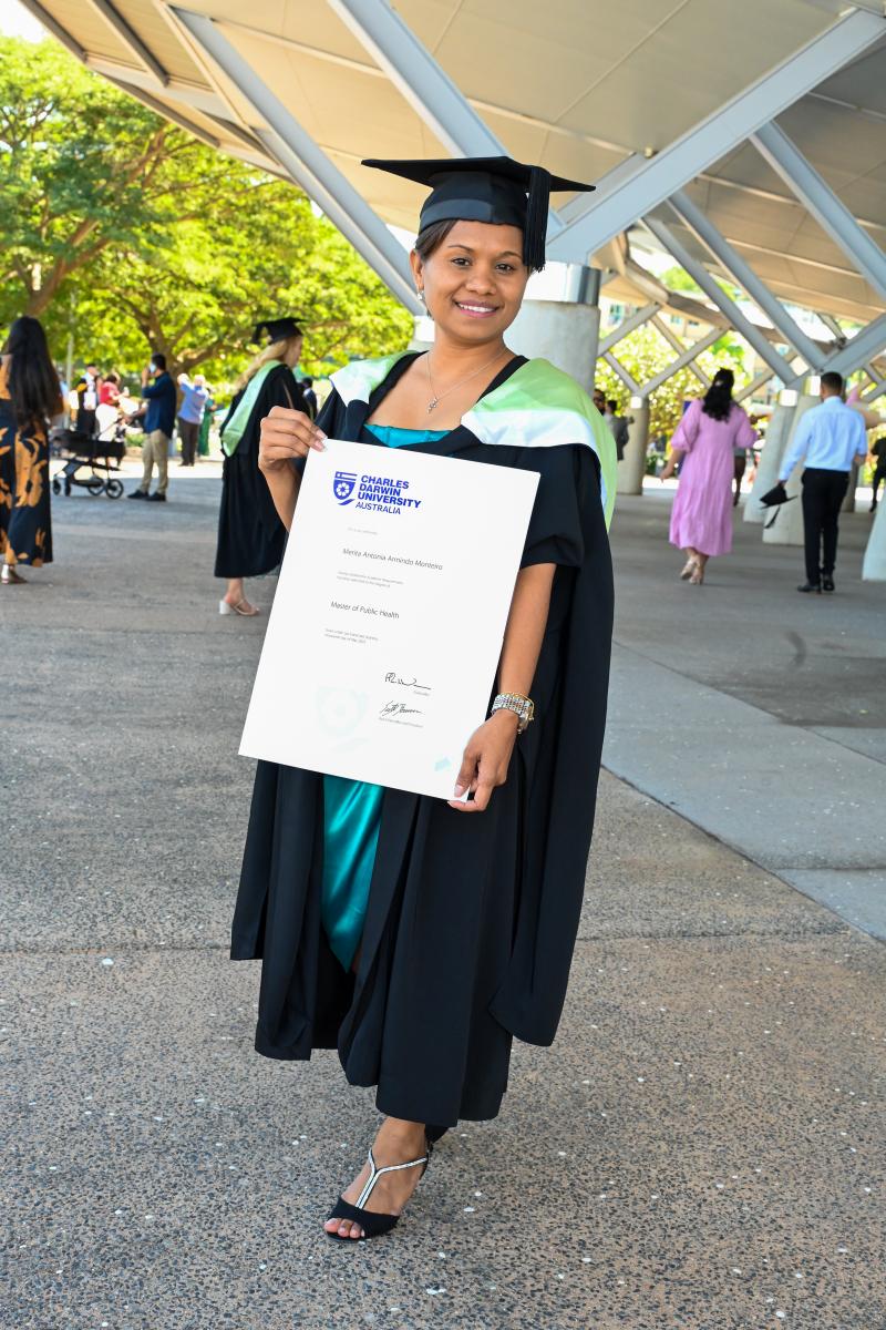 International student, Dr Merita Monteiro graduated with a Master of Public Health in 2023. She plans to pursue a PhD in the area of public health.