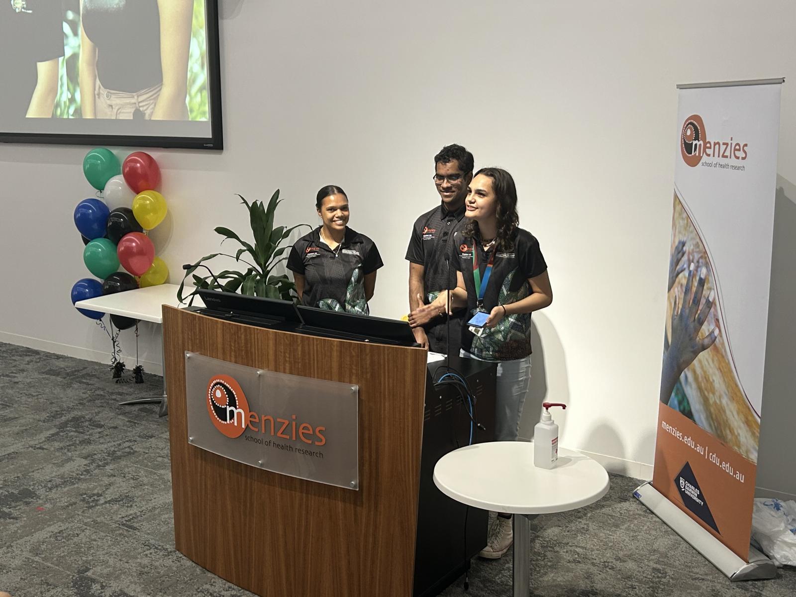 Image 2: The Menzies Biyamarr ma Traineeship Program graduates, Shenea Tipungwuti-Edwards, Royce Ramsamy and Porsche Cahill, share an insight into their time at Menzies.