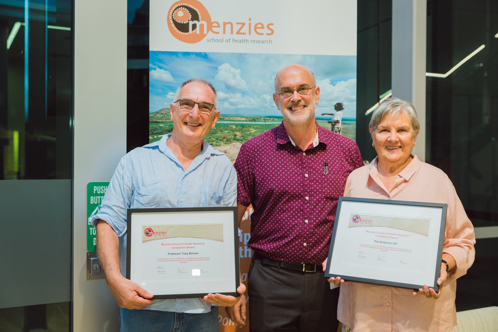 Menzies Director Professor Alan Cass with Menzies Companion recipients Professor Tony Barnes and Pat Anderson AO.