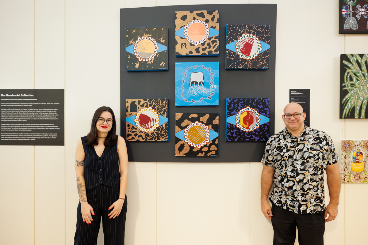 Image 2: Menzies Art Gallery of Scientific Discovery Project with artist Jayde Hopkins and Menzies Associate Deputy Director, Indigenous Leadership and Engagement, Mark Mayo.