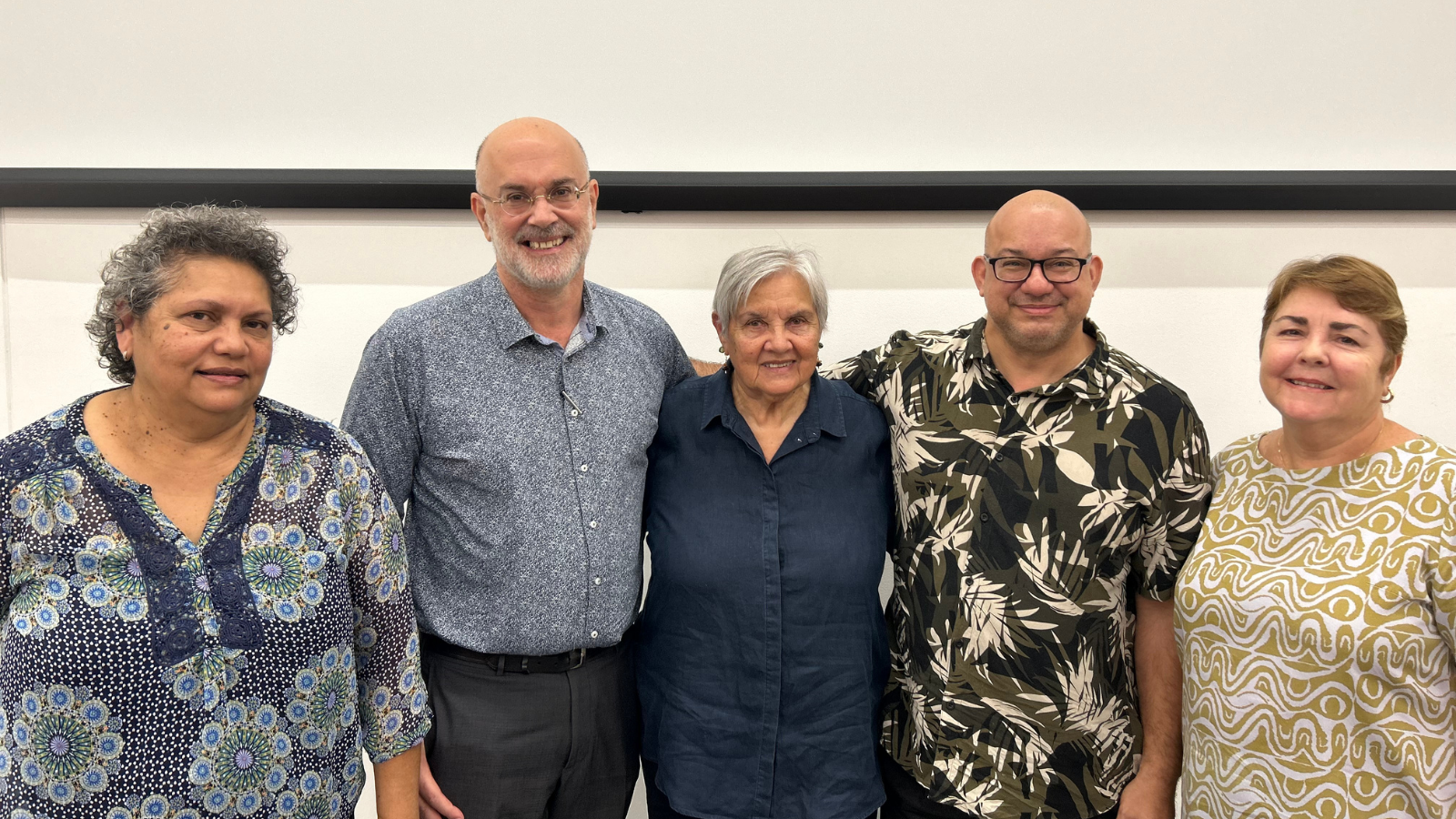 Image 4 (L-R): Menzies Biyamarr ma Project Officer, Diane Walker; Menzies Director, Prof. Alan Cass; Co-chair of the Uluru Dialogue, Pat Anderson; Menzies Associate Deputy Director, Indigenous Leadership and Engagement, Mark Mayo and Menzies Biyamarr ma Manager, Vanessa Harris.