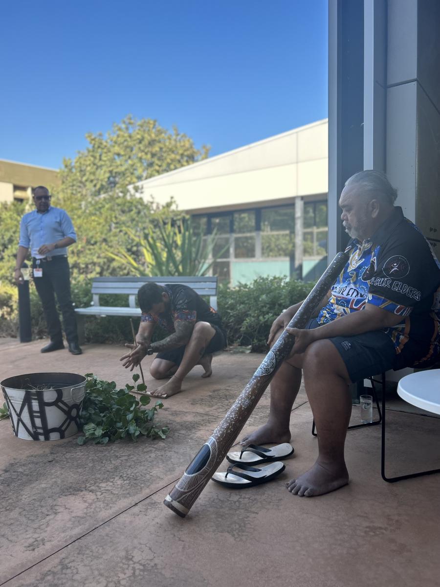 Image 5: Larrakia men, Trent Lee and his father Tony Lee on didgeridoo ran the Menzies NAIDOC Week Smoking Ceremony.