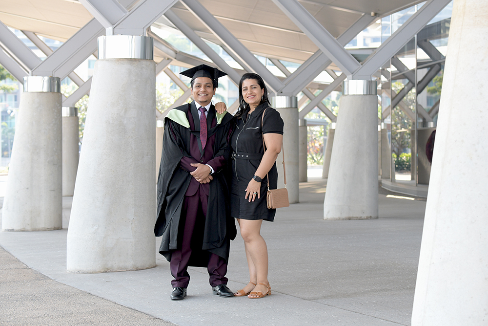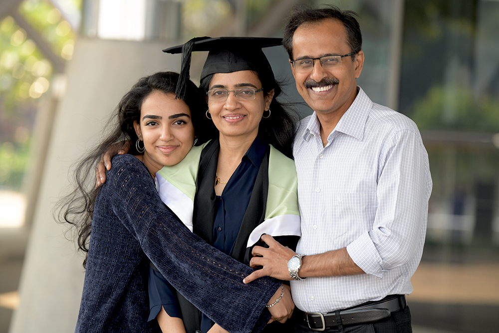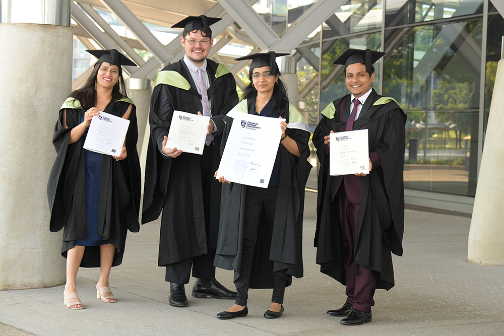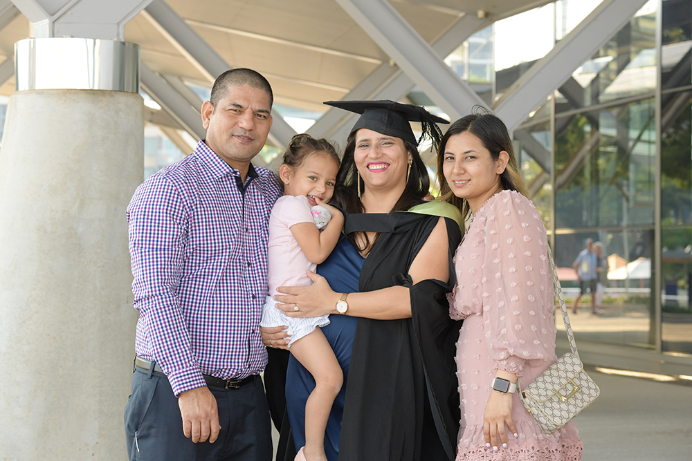 Sushia Saud, Jarrah Den Fowler, Renu Unnikrishnan and Bisal Kadariya celebrate their graduation.