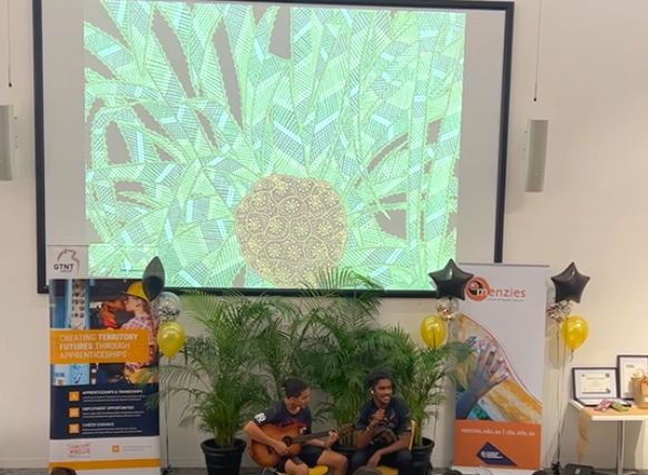 Image 3: Menzies-Ramaciotti and Biyamarr ma trainees, Royce (on vocals) and Henrique (on guitar) performed at the graduation.