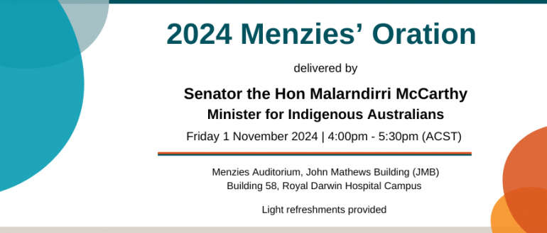 The Menzies Oration is an annual public address designed to stimulate robust and challenging discussion about the future of health in the Northern Territory, Australia and internationally.