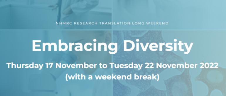 The NHMRC Research Translation Long Weekend 2022 has returned as a hybrid event, running 17 - 22 November, combining online presentations and in-person events.