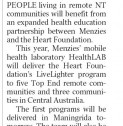 Heidi developed and trialled the biomedical pathways model at Menzies which culminated in her co-leading the new Ramaciotti Regional and Remote Health Sciences Training Centre which aims to develop a sustainable, local, and Aboriginal and Torres Strait Islander biomedical and health sciences workforce in the Northern Territory. She also leads HealthLAB, a hands-on health education lab that travels to schools and communities across the NT and encourages healthy lifestyles and pathways into health sciences. To date >11,000 Territorians have participated in HealthLAB.