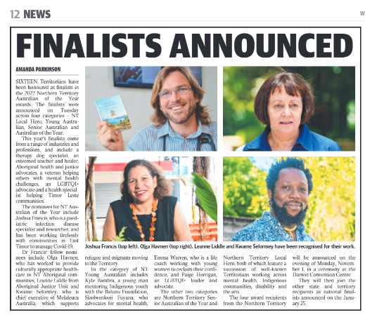 Prof Francis leads programs in Timor-Leste focused on teaching, capacity strengthening, health systems improvement and research. His research on tuberculosis, rheumatic heart disease and antimicrobial resistance in the Northern Territory and Timor-Leste has significantly impacted policy, guidelines and health system strategy.