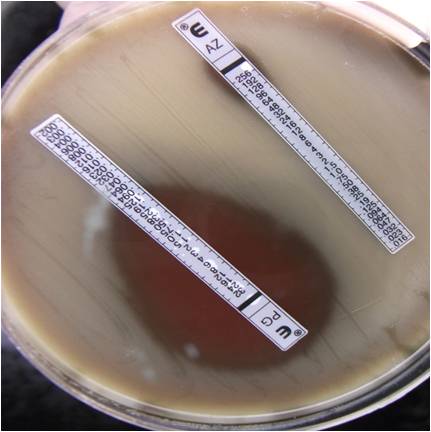 Image: Susceptibility testing of Streptococcus pneumoniae to the antibiotics azithromycin and penicillin.
