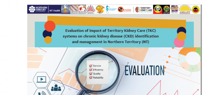 The evaluation project involves process and outcome evaluations to assess the implementation, usability, and impact of Territory Kidney Care (TKC) system on chronic kidney disease (CKD) service delivery in Northern Territory (NT). The project is aimed at addressing stakeholder requirements and expectations including funding organisations, Department of Health, participating primary health services and the TKC Steering Committee. TKC has been developed in response to stakeholder needs. The time frame of the evaluation (up to five years) accounts for this developmental process and the staged implementation of TKC across the Territory.