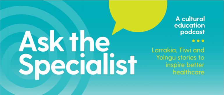 “Ask the Specialist” is a cultural education podcast developed by researchers at Menzies School of Health Research with Top End Health Service, the NT Aboriginal Interpreter Service and Aboriginal leaders: Larrakia Elder Aunty Bilawara Lee, Tiwi Elder Pirrawayingi Puruntatameri and Yolŋu leader Rarrtjiwuy Melanie Herdman.