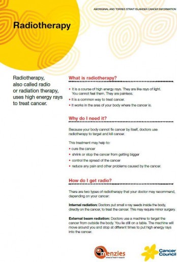 The information in the fact sheets has been adapted for Aboriginal and Torres Strait Islander people by Menzies School of Health Research in consultation with a Clinical Advisory Group and an Indigenous Consultation group. Production by Cancer Council.