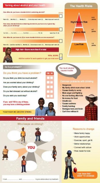 This pamphlet was developed by Department of Health in collaboration with Menzies to assist in delivery of information and brief interventions for people with high risk drinking.